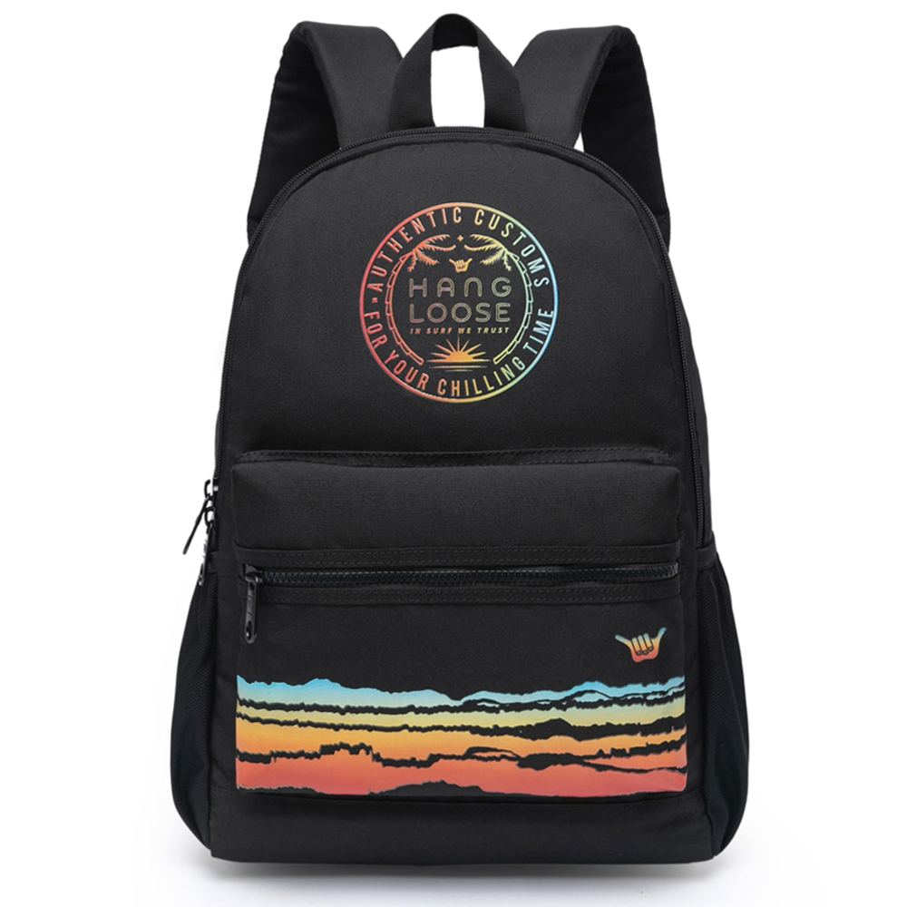 Mochila Hang Loose construído em poliéster 600D, com compartimento para notebook de até 15,5", compartimento principal grande e outro compartimento frontal com fechamento em zíper, além de alça de costas acolchoadas e alça de mão.