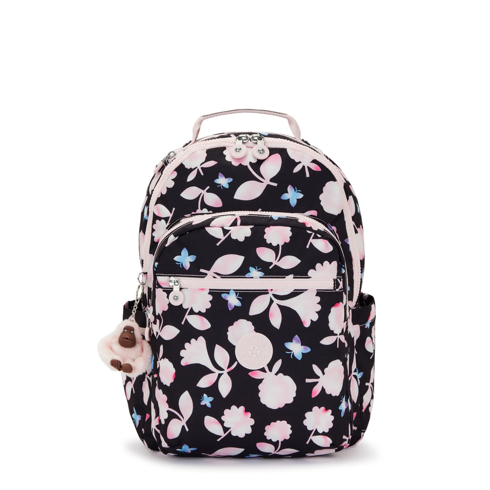 Mochila Kipling Seoul te permite guardar não só um laptop, como todo o reastante que você precisa, 4 compartimentos principais, 3 zíperes frontais e 2 bolsos laterais fazem com que seja perfeita para levar todo o necessário para estudos ou trabalho, alça superior e alças de mochila também te dão conforto e facilidade para transportá-la.