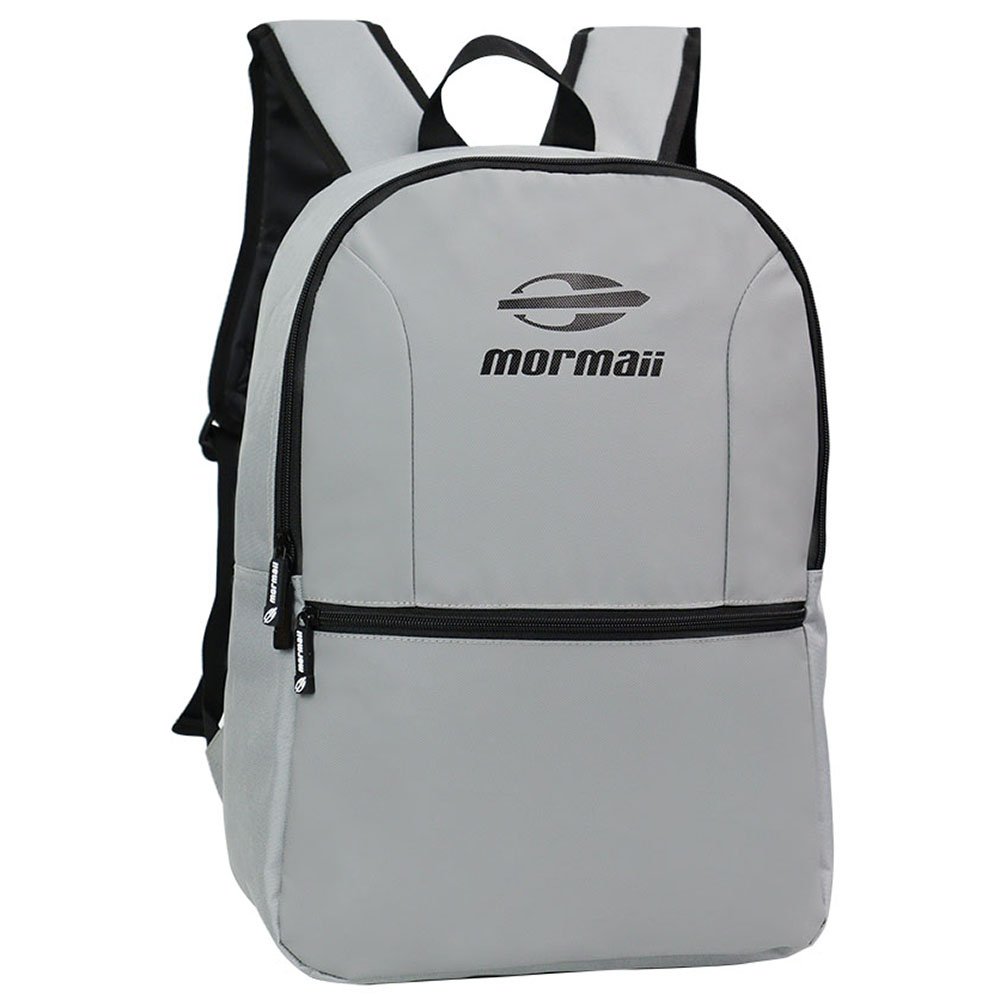 Mochila Mormaii com alças acolchoadas, alça manual reforçada, costas acolchada reforçada, costura dupla reforçada e etiquetas personalizadas.