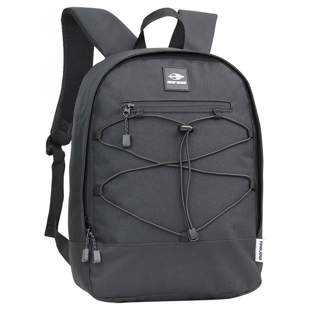 Mochila Mormaii com alças acolchoadas, alça manual reforçada, costas acolchada reforçada, costura dupla reforçada e etiquetas personalizadas.
