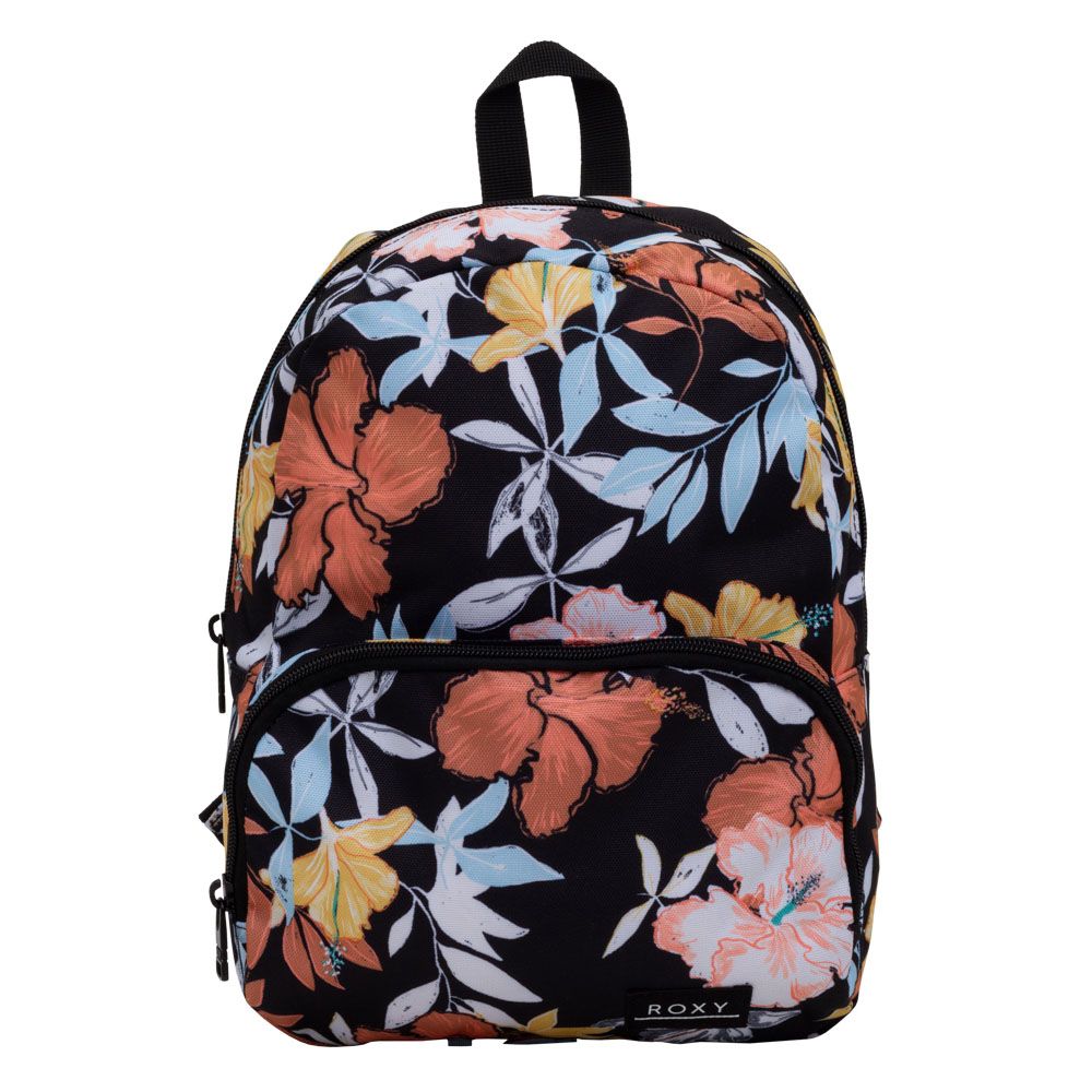 Mochila de tamanho médio, estampa full print sublimada exclusiva Roxy, um compartimento principal, um compartimento menor na parte frontal, ambos com fechamento em zíper, alças ajustáveis com reforço nos ombros e patch frontal de algodão com o nome da marca.