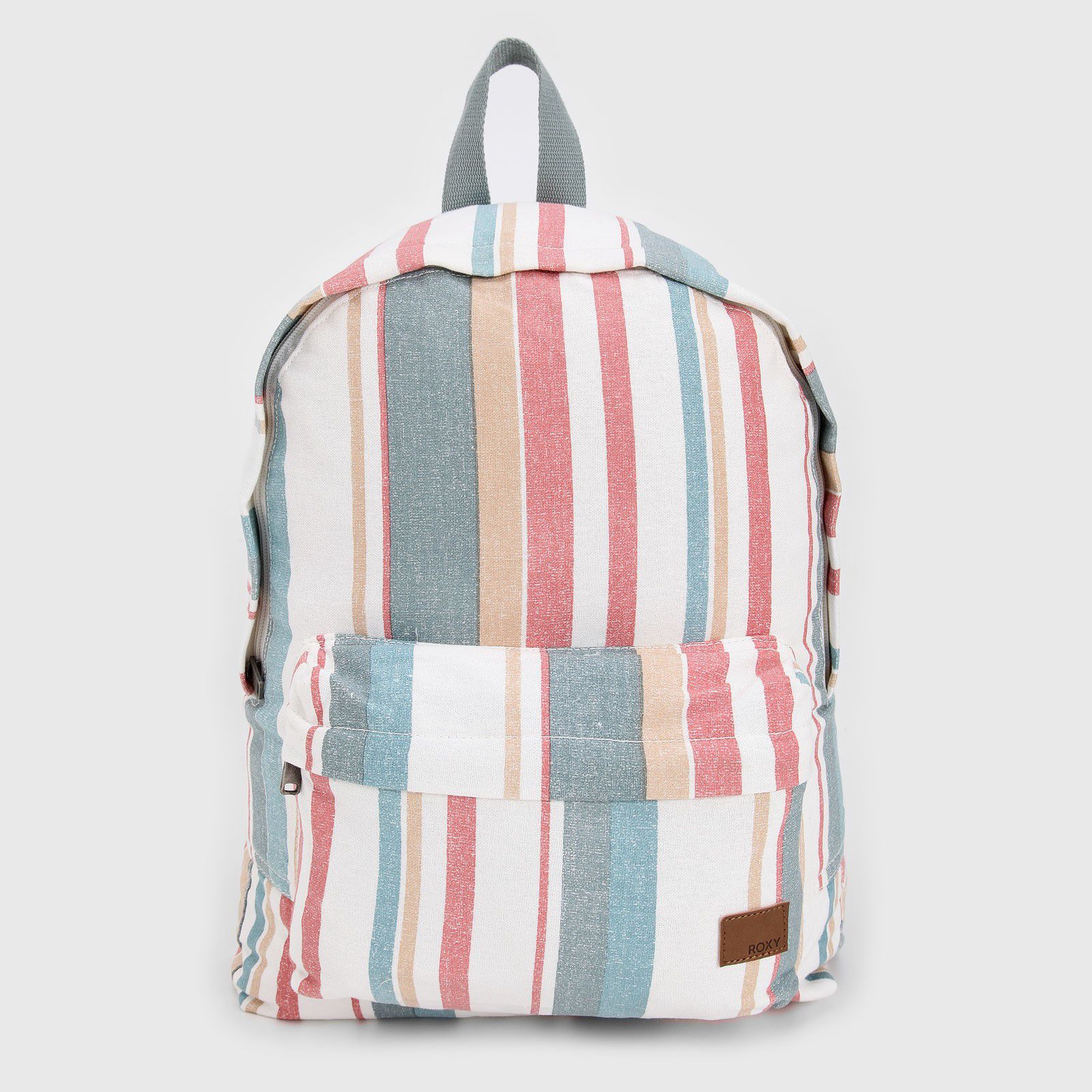 Mochila Roxy com alça de 33cm, estampa abstrata, bolso frontal com fecho em zíper e fecho principal por zíper.