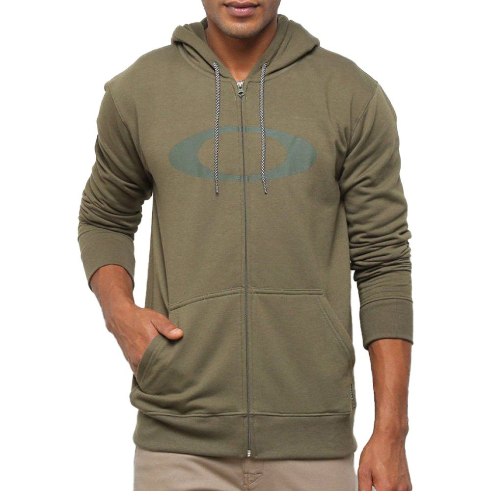Moletom Oakley regular fit com capuz, fechamento em zíper logo Oakley Ellipse aplicado frontal (Silk Base d’água) e barras e punhos com elasticidade (Rib canelado).