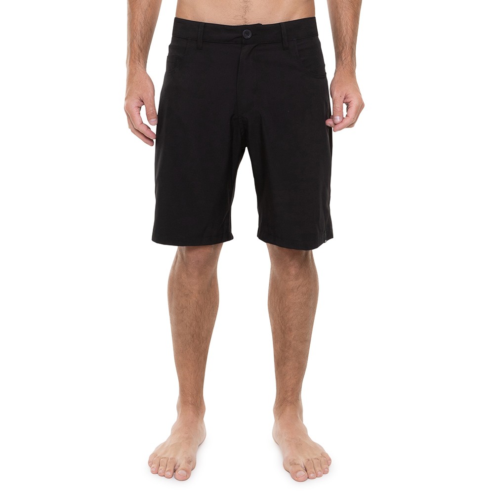 Bermuda Quiksilver hybrid com tecido de poliéster e elastano, bolsos 5pocket nas laterais e frente, etiqueta localizado na barra da perna esquerda de quem veste, bolsos chapado sem lapela traseiros com aplicação de etiqueta, fechamento da vista em botão de massa e zíper com tratamento anti corrosivo e modelagem straighfit.