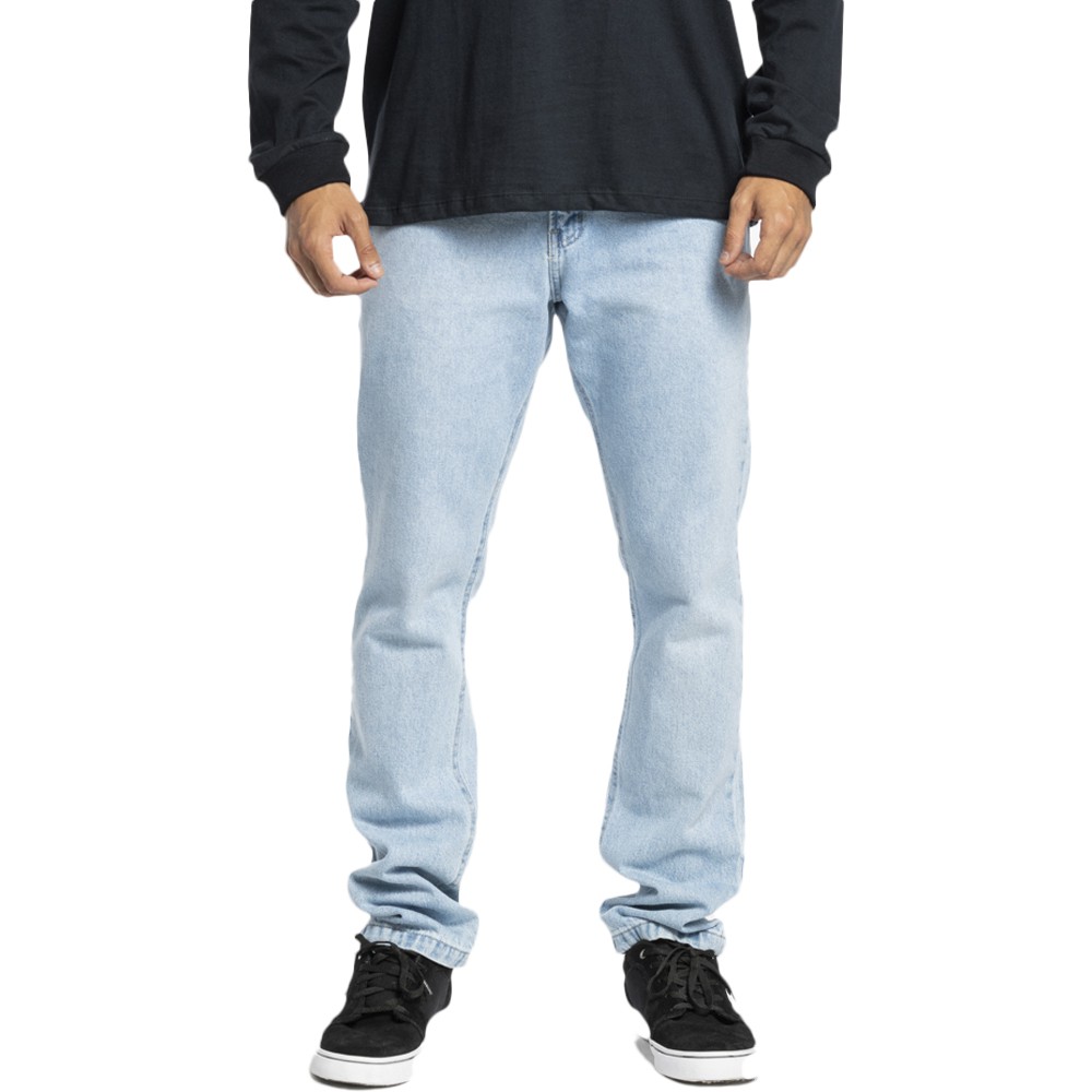 Calça Jeans Quiksilver premium, tecido em algodão sem elastano com lavanderia e amaciado, aplicação de etiquetas padrão, modelagem straight e etiquetas personalizadas.