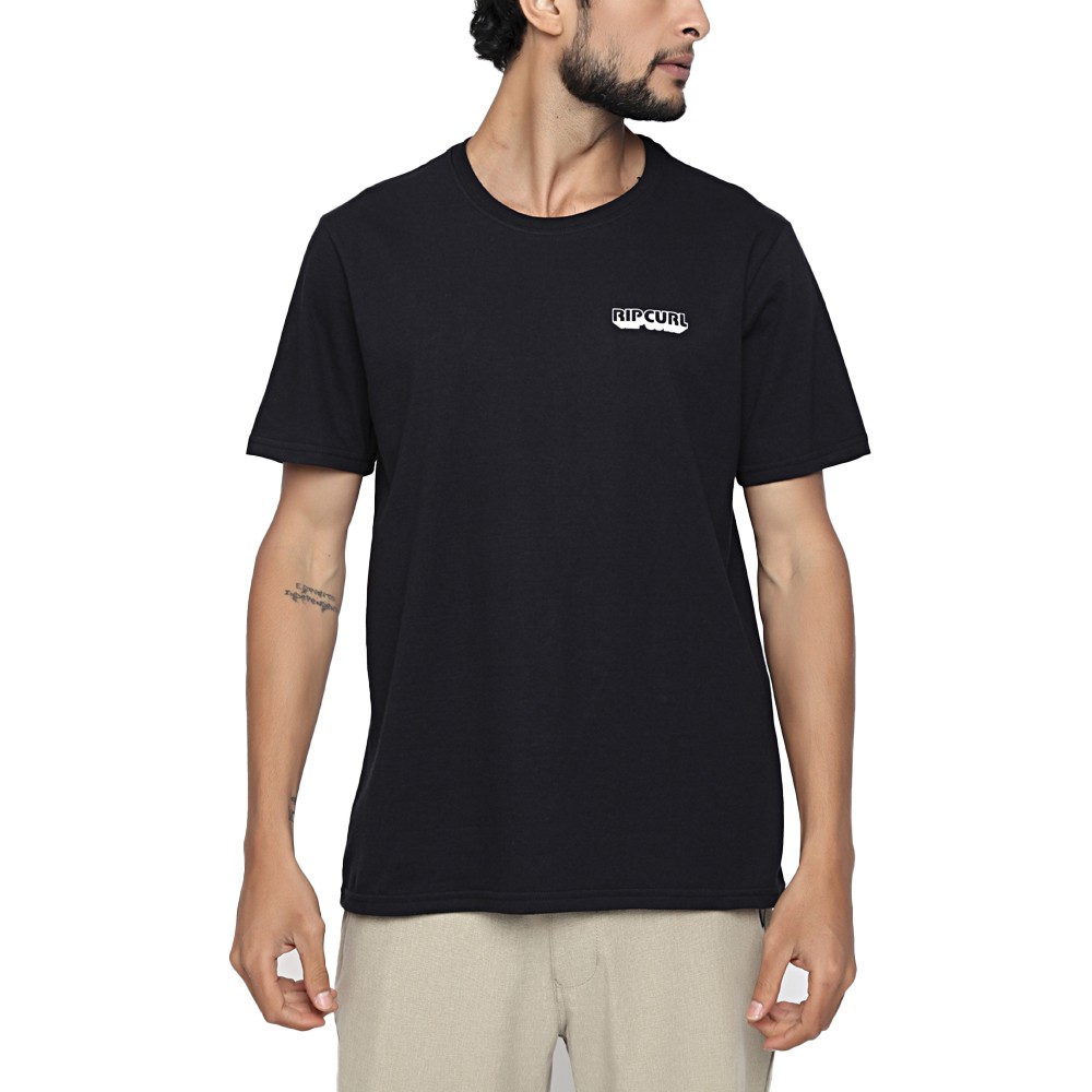 Camiseta Rip Curl, meia malha 30.1, estampa localizada na parte frontal e traseiro, modelagem relaxed fit e etiquetas personalizadas.