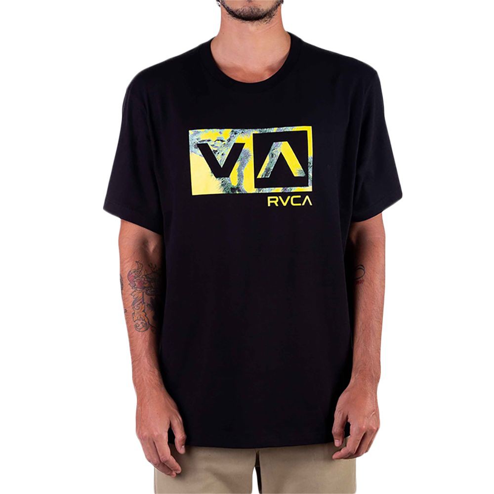 Camiseta RVCA meia malha 30.1 de algodão, modelagem regular, estampa na parte frontal e etiquetas personalizadas.