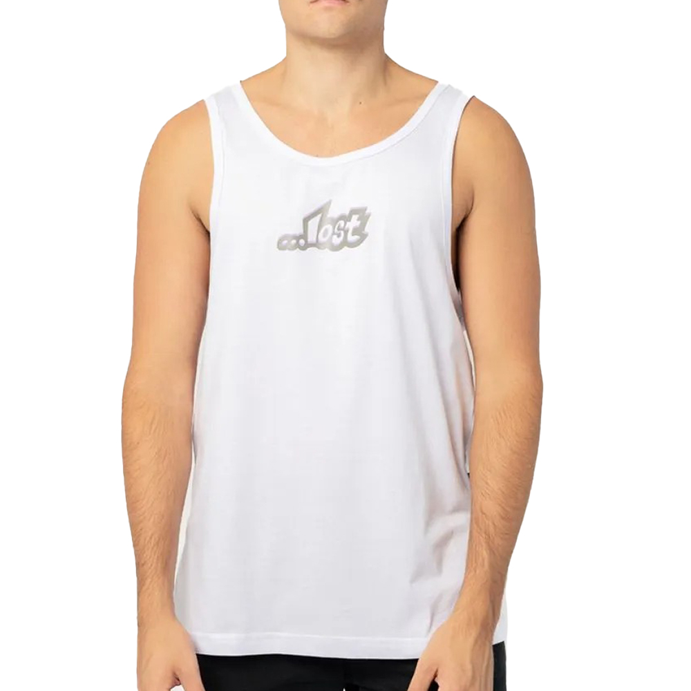 Regata Lost básica, meia malha 30.1, silk frontal, modelagem regular e etiquetas personalizadas.