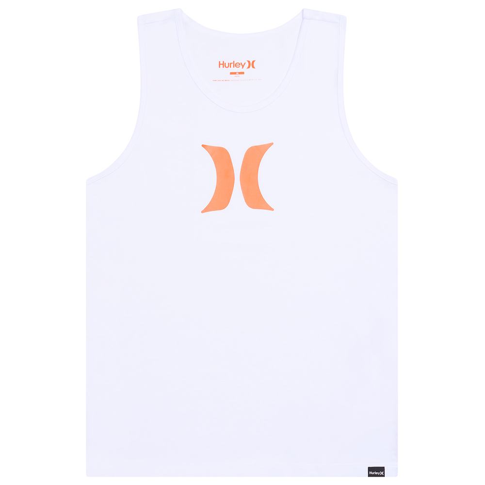 Regata Hurley feita em meia malha 30.1, gola rebatida, estampa localizada base d'agua e etiqueta clips ONE&ONLY na barra.