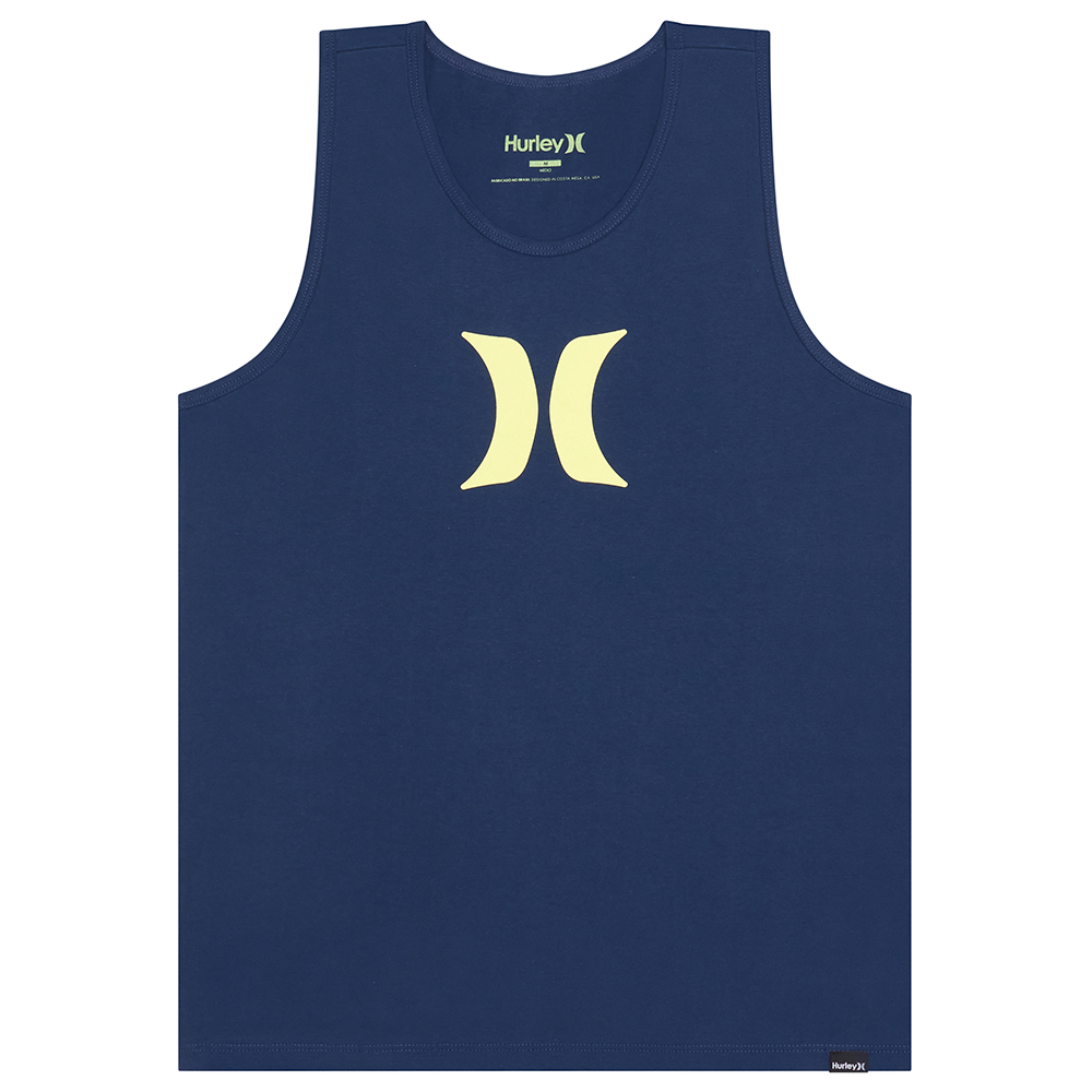 Regata Hurley feita em meia malha 30.1, gola rebatida, estampa localizada base d'agua e etiqueta clips ONE&ONLY na barra.