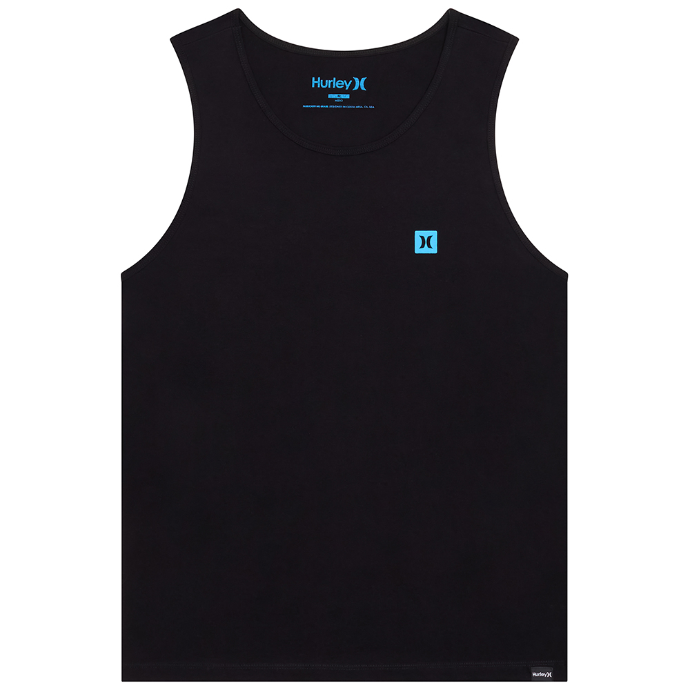 Regata Hurley feita em meia malha 30.1, gola rebatida, estampa localizada base d'agua e etiqueta clips ONE&ONLY na barra.