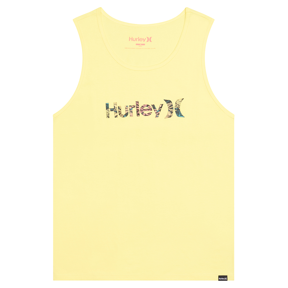 Regata Hurley feita em meia malha 30.1, gola rebatida, estampa localizada base d'agua e etiqueta clips ONE&ONLY na barra.