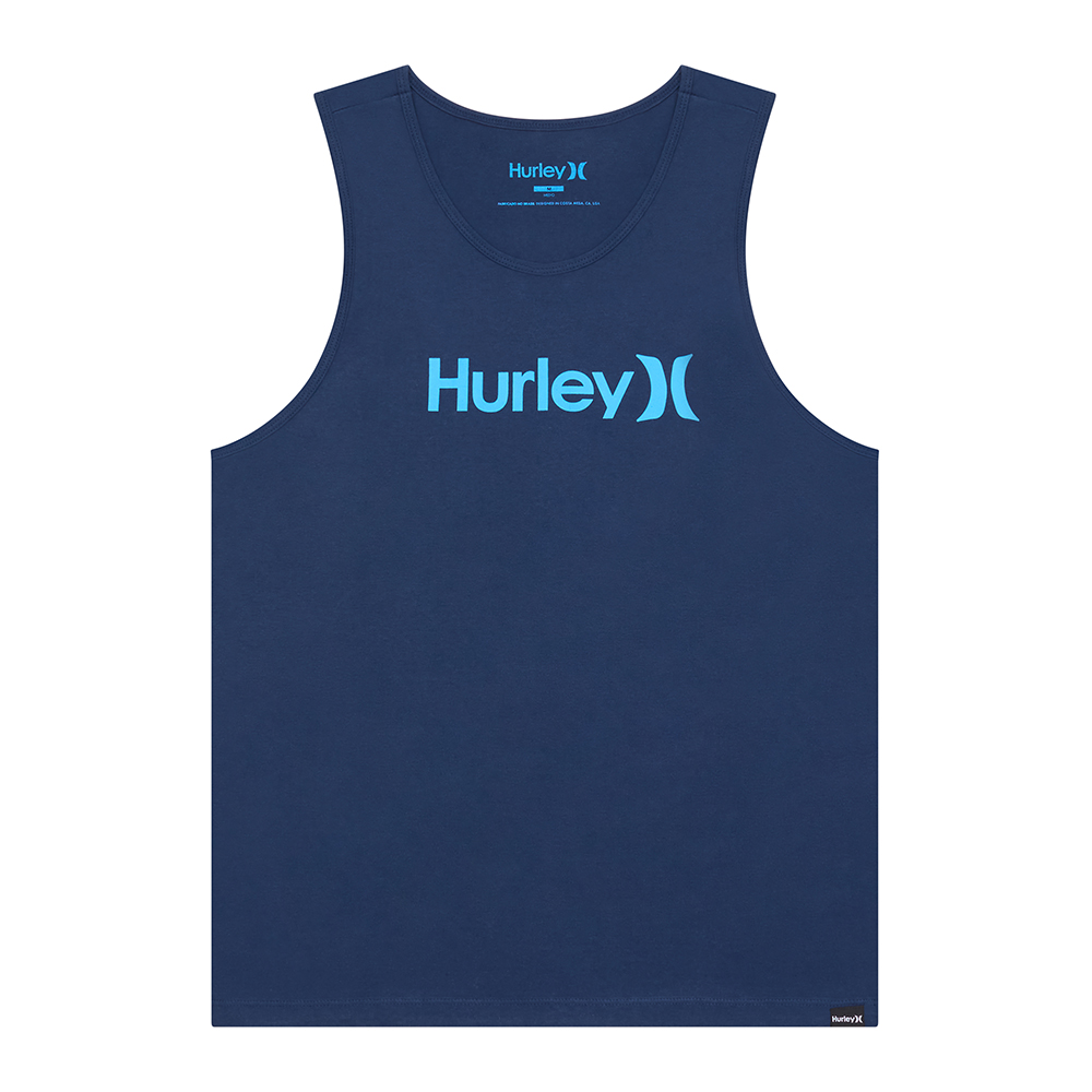 Regata Hurley feita em meia malha 30.1, gola rebatida, estampa localizada base d'agua e etiqueta clips ONE&ONLY na barra.