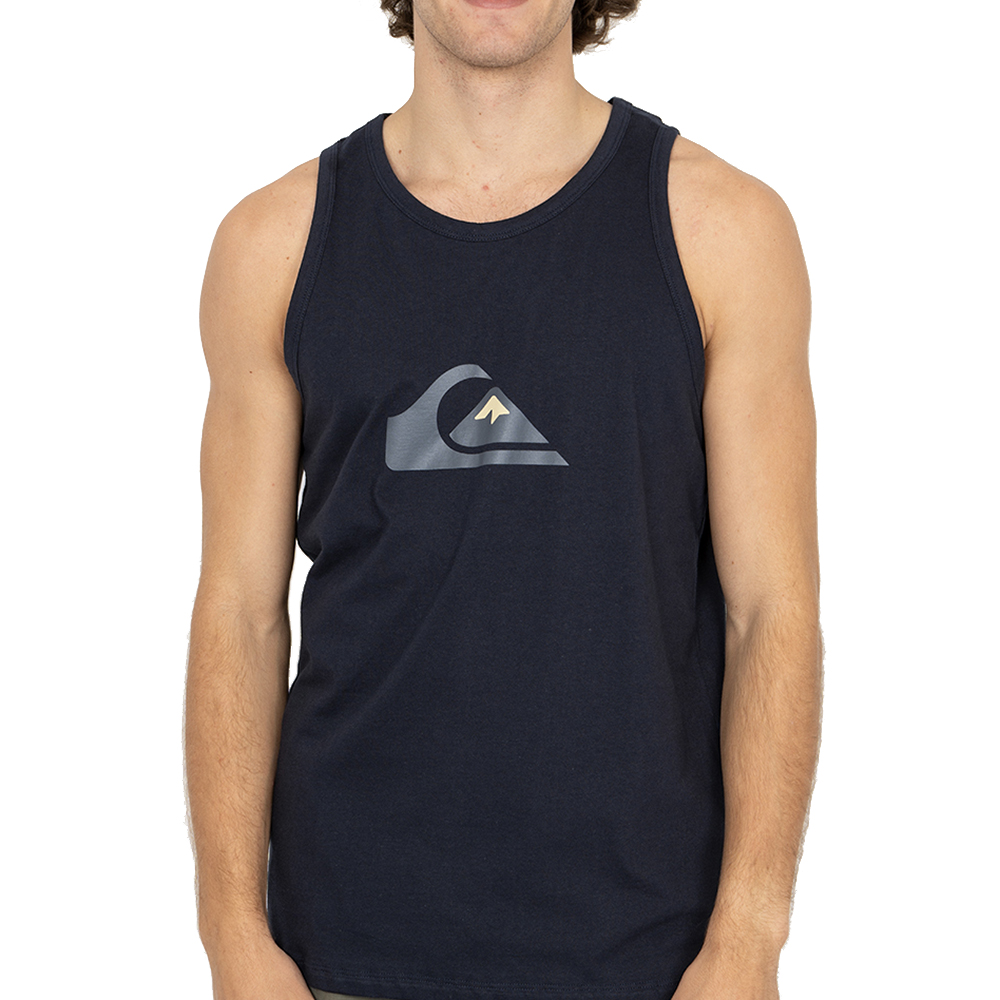 Regata QuikSilver feita em modelagem regular, meia malha, estampa na frente e etiqueta da marca aplicada na bainha do lado esquerdo de quem veste.