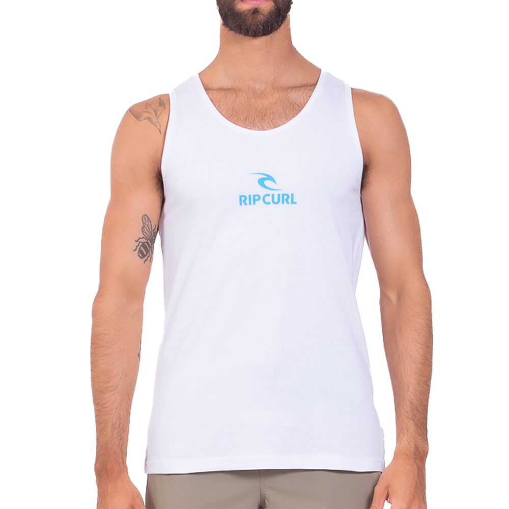 Regata Rip Curl feita em modelagem regular fit, meia malha 30.1 penteada, estampa localizada na frente e etiquetas personalizadas.