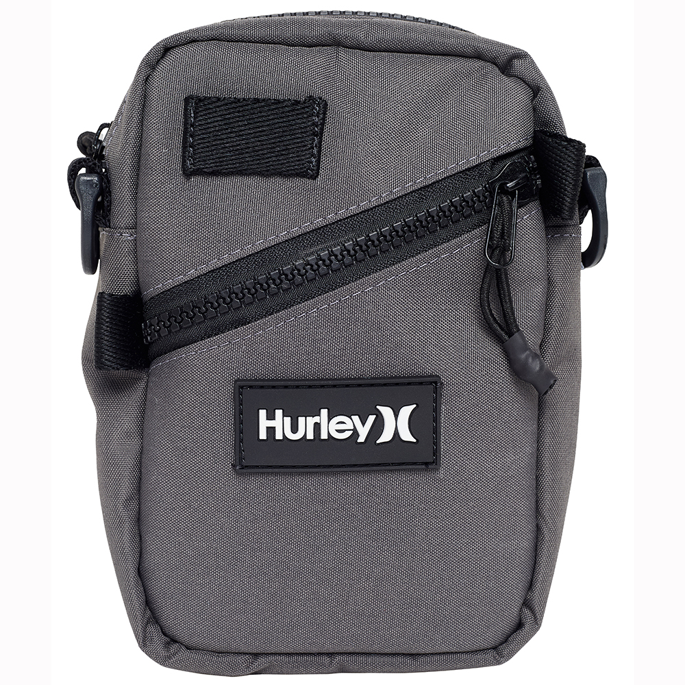 Shoulder Bag Hurley com patch frontal ONE&ONLY de borracha, alça com regulagem, fechamento com zíper, suporte para óculos e detalhes contrastantes.