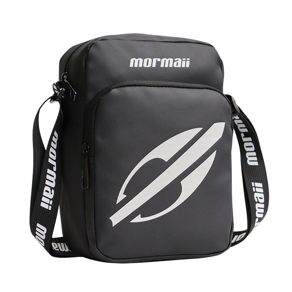 Shoulder Bag Mormaii com alça manual reforçada, logo estampado, costura dupla reforçada e etiquetas personalizadas.