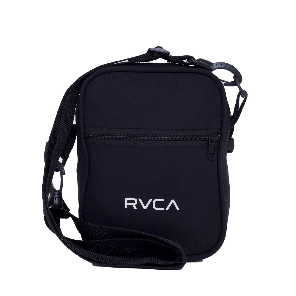 Shoulder Bag Rvca com alça ajustável o que possibilita várias formas de uso, podendo ser usada frente e verso, com personalização em ambos os lados, bolso diagonal com sobreposição de telinha, bolso reto com puxador, compartimento principal com fechamento de zíper e puxador, divisória interna e etiquetas personalizadas.