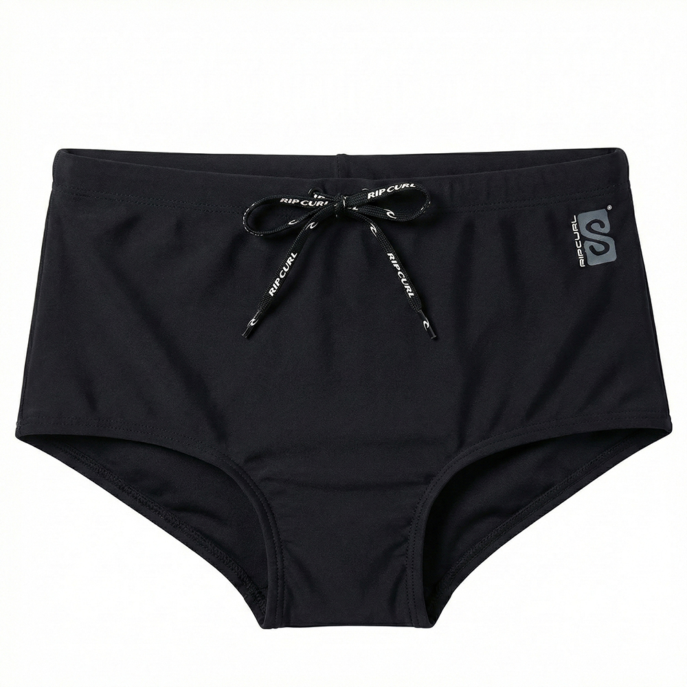 Sunga Rip Curl com proteção UV+50, cadarço personalizado, estampa localizada, lateral 17cm e etiquetas personalizadas.