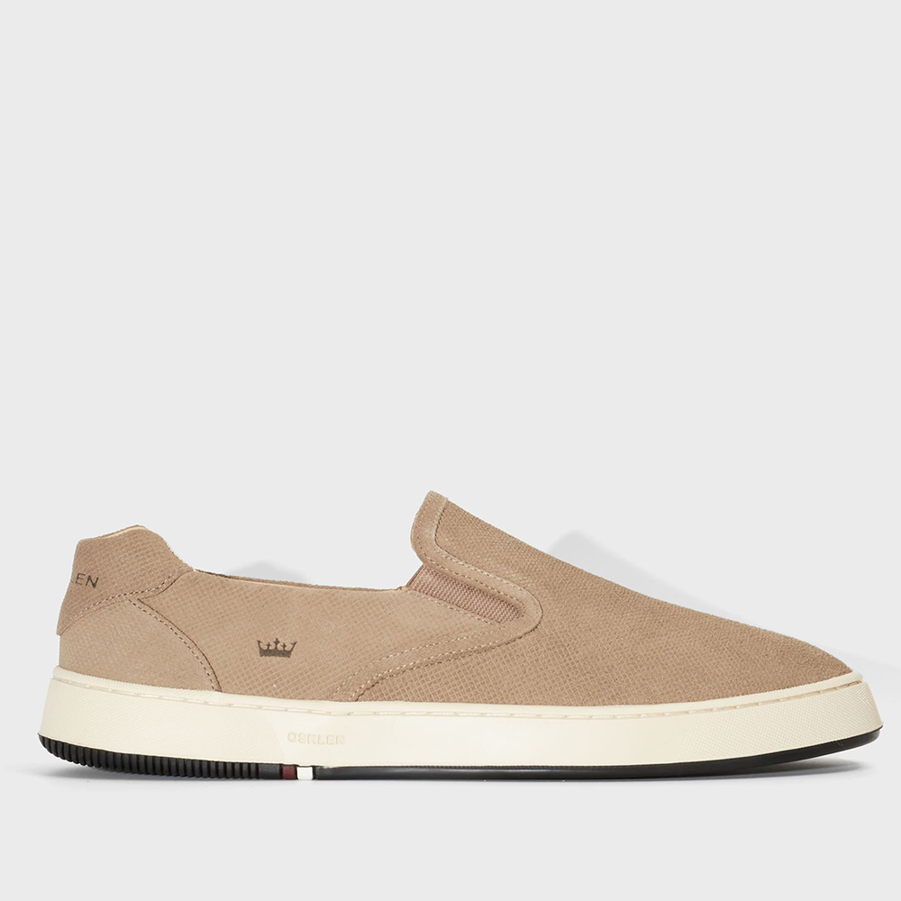 Tênis Soho em couro texturizado. Modelo sem amarração, com elástico que garante praticidade ao calce. Forro em sarja 100% algodão e palmilha em couro. Solado de borracha costurado ao cabedal com design exclusivo Osklen.