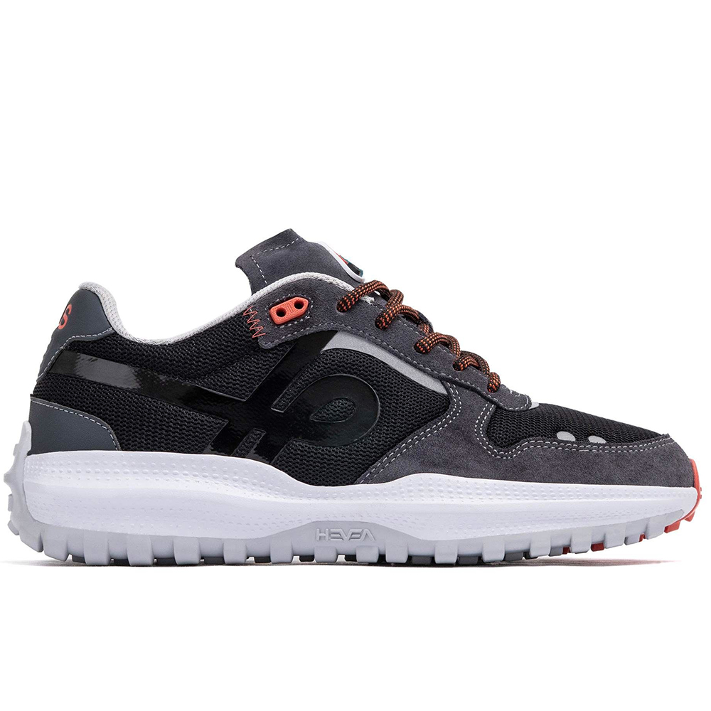 Tênis OUS com cabedal confeccionado em mesh, forro esportivo e detalhes laminados, feitos a partir de fontes sustentáteis, solado construído em EVA e borracha Granular A+, palmilha Ortholite HybridPlus-Bio, mistura exclusiva de 7% de bio-óleo derivado de mamona, 43% de espuma reciclada de resíduos de produção e 7% de borracha reciclada para atingir um total de 57% de conteúdo ecológico que utiliza petróleo e menos energia, ao mesmo tempo que adiciona menos aos aterros sanitários.